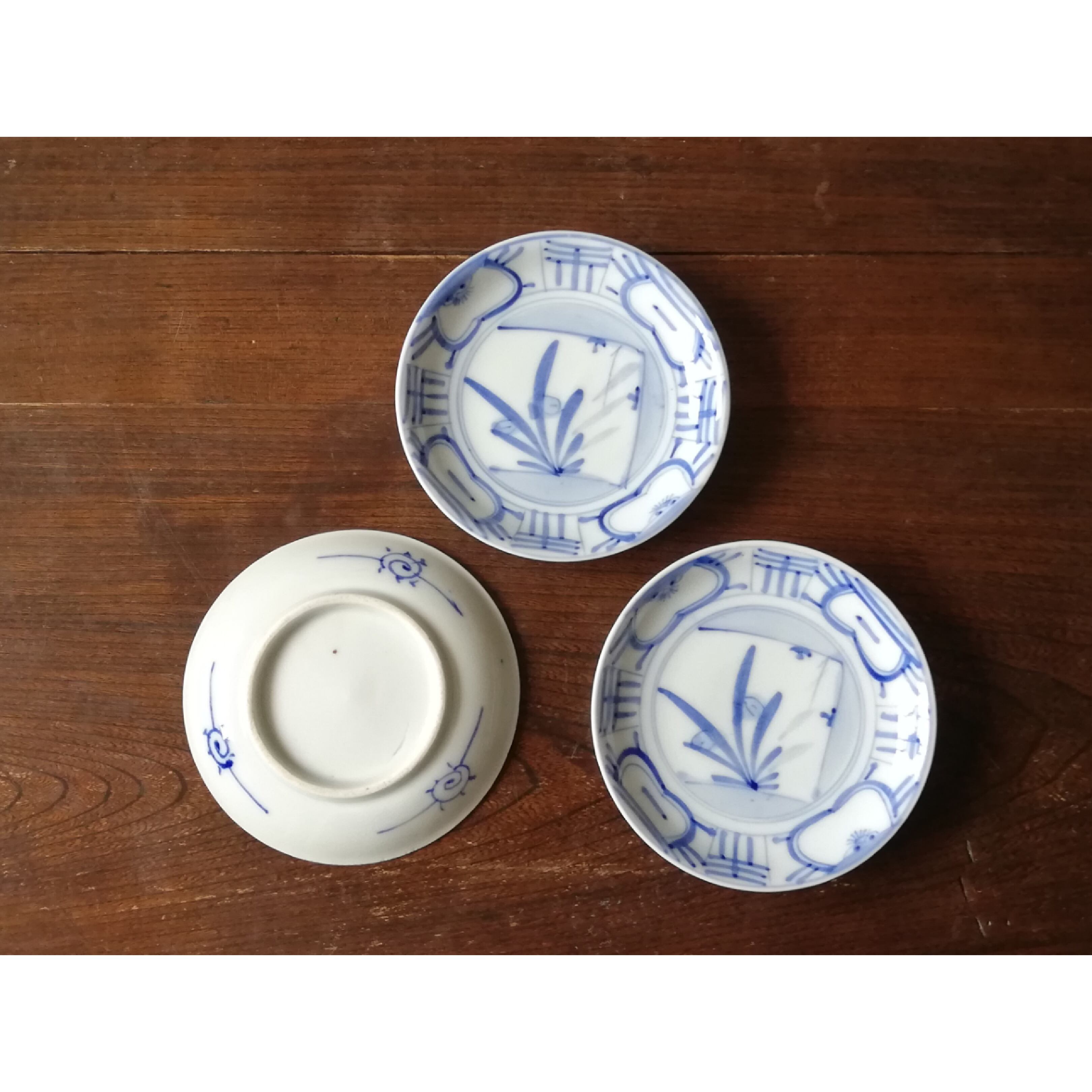 骨董 染付け花紋様平皿